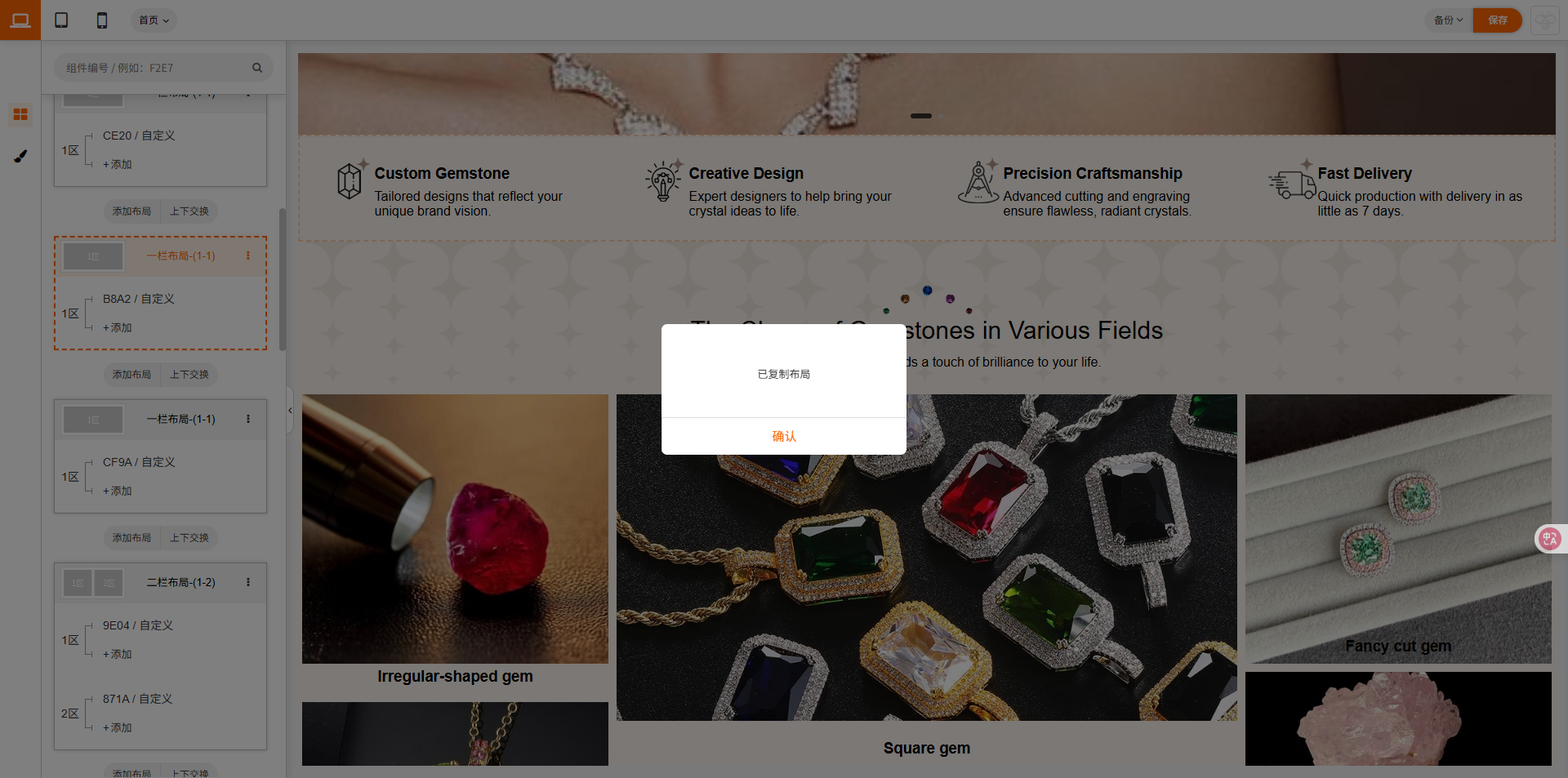 这样我们就完成了一次布局的复制操作,需要注意的是,复制布局是一个模块的统一复制,不能对一个模块内的单一组件进行复制。