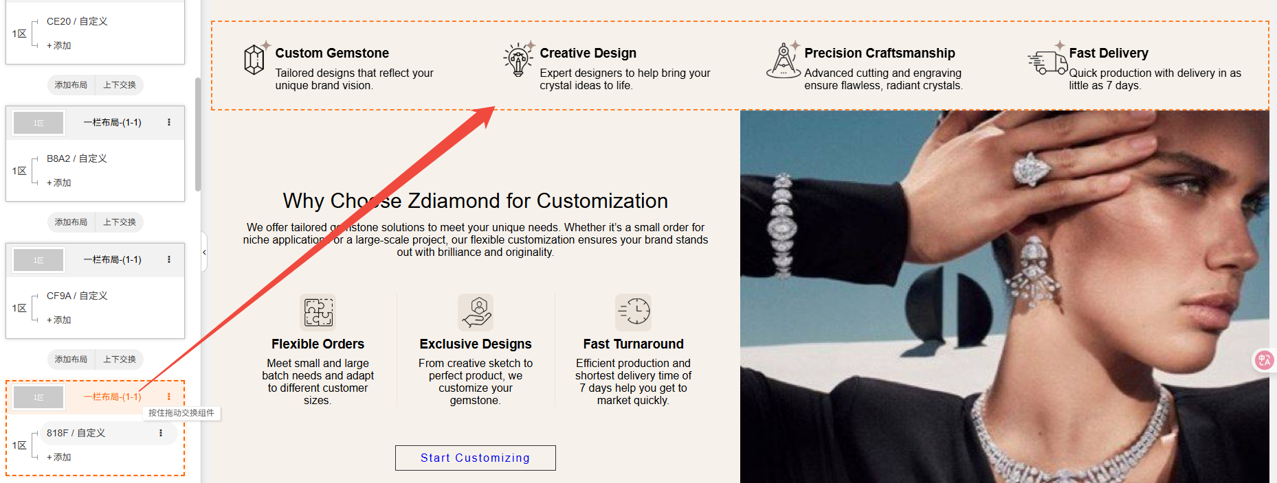 注意,本方法仅仅适用于单独网站的一个语种,不能复制到其他语种的装修后台。